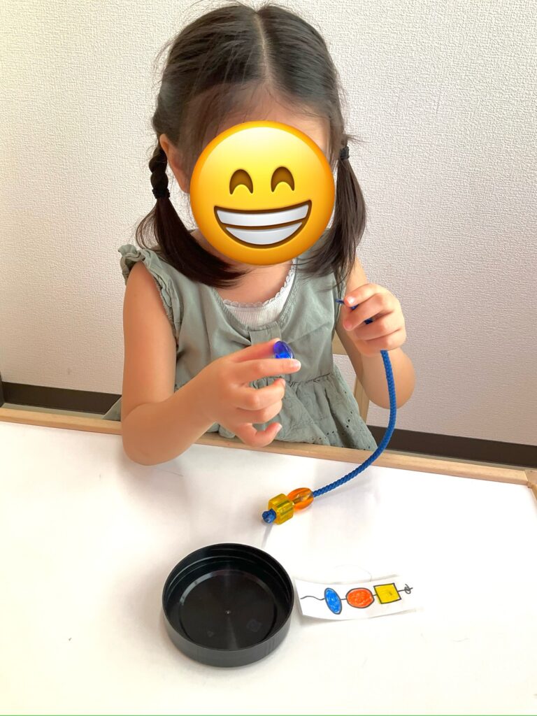 先ほどでてきたひも通しの模倣をこちらのお友達も頑張りました!