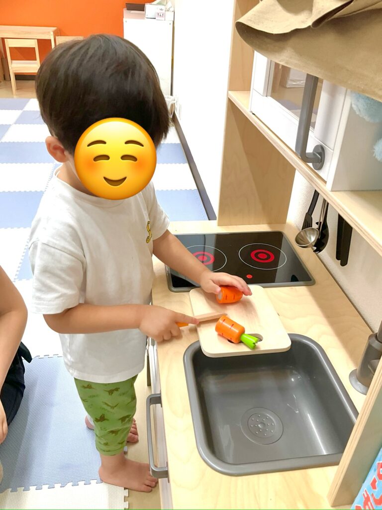 おままごとの包丁でにんじんを切っています🥕
