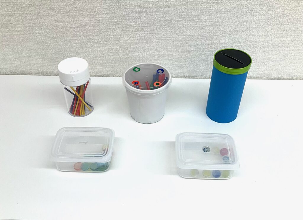 手と目を使って集中力を保ちながら、ビー玉やおはじき、棒などを穴に入れていく課題です。