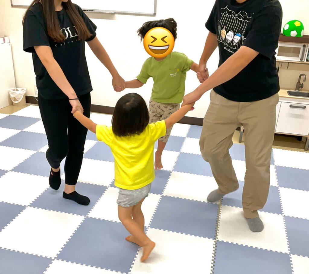 みんなで輪になって手を繋ぐと楽しさが増しますね😊