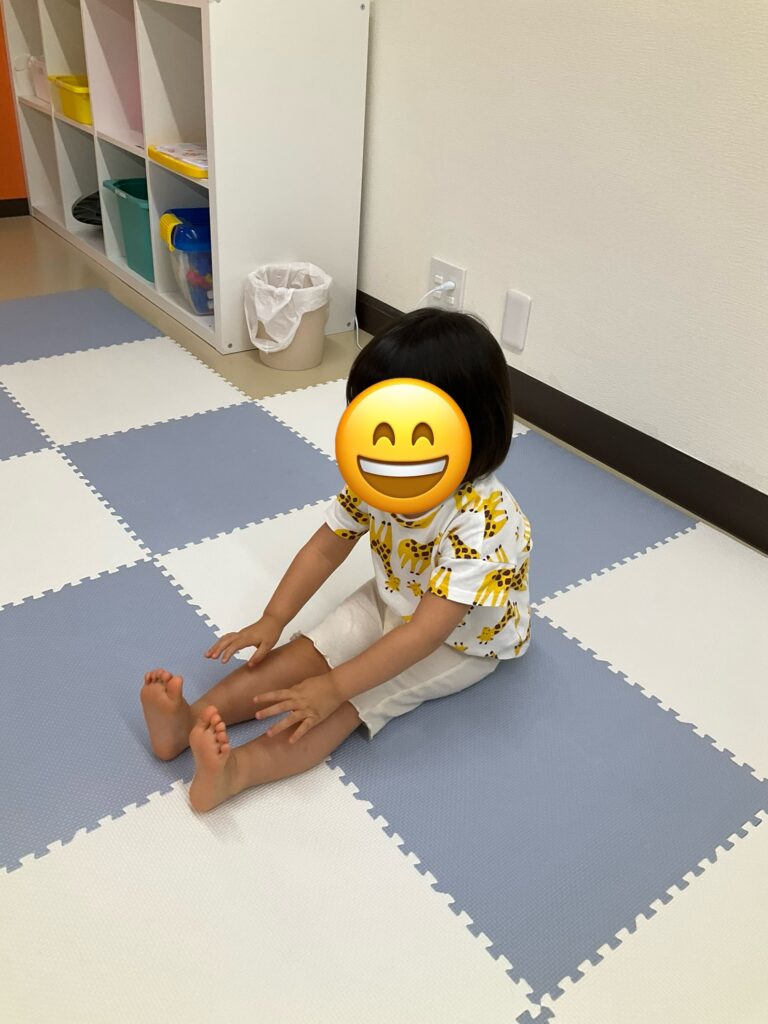 お写真は、座って「ひざ~♪」の声掛けて、触ってもらっています。