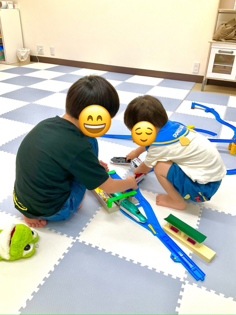 2人仲良く同じ玩具で遊んでいます✨