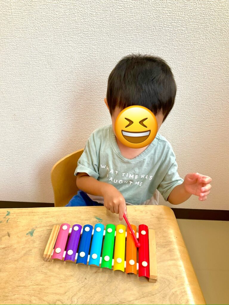 カラフルな鉄琴で上手に音を鳴らしていたお友達です♪