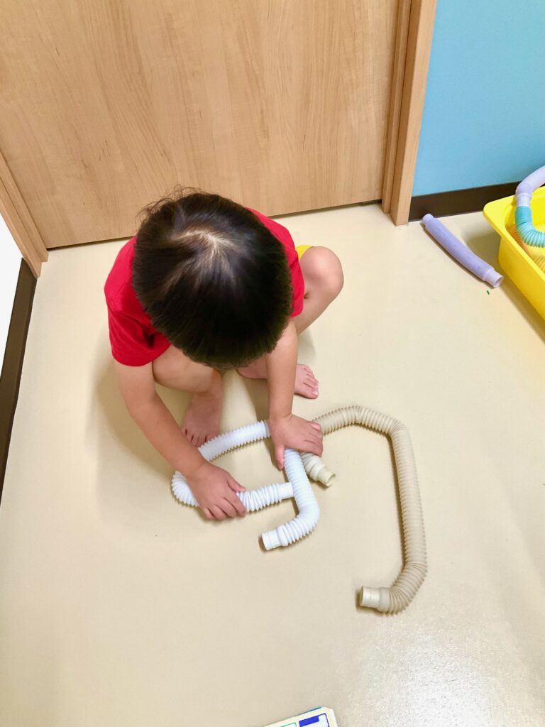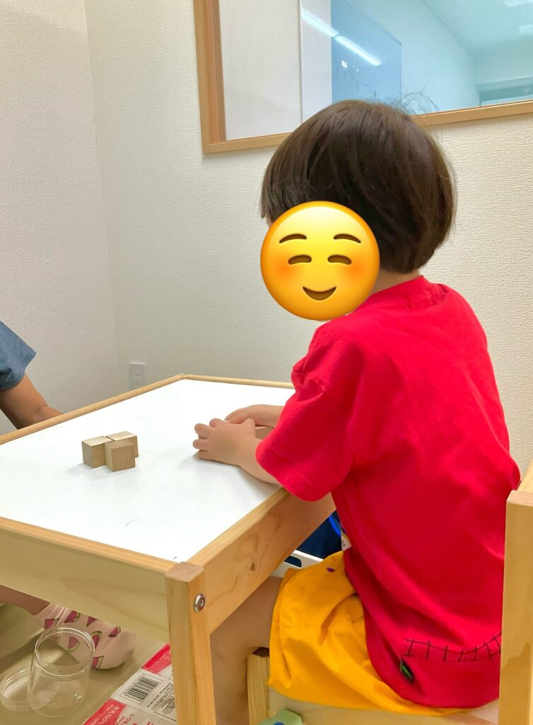 今回紹介します課題は「ものの模倣(積み木)」です。