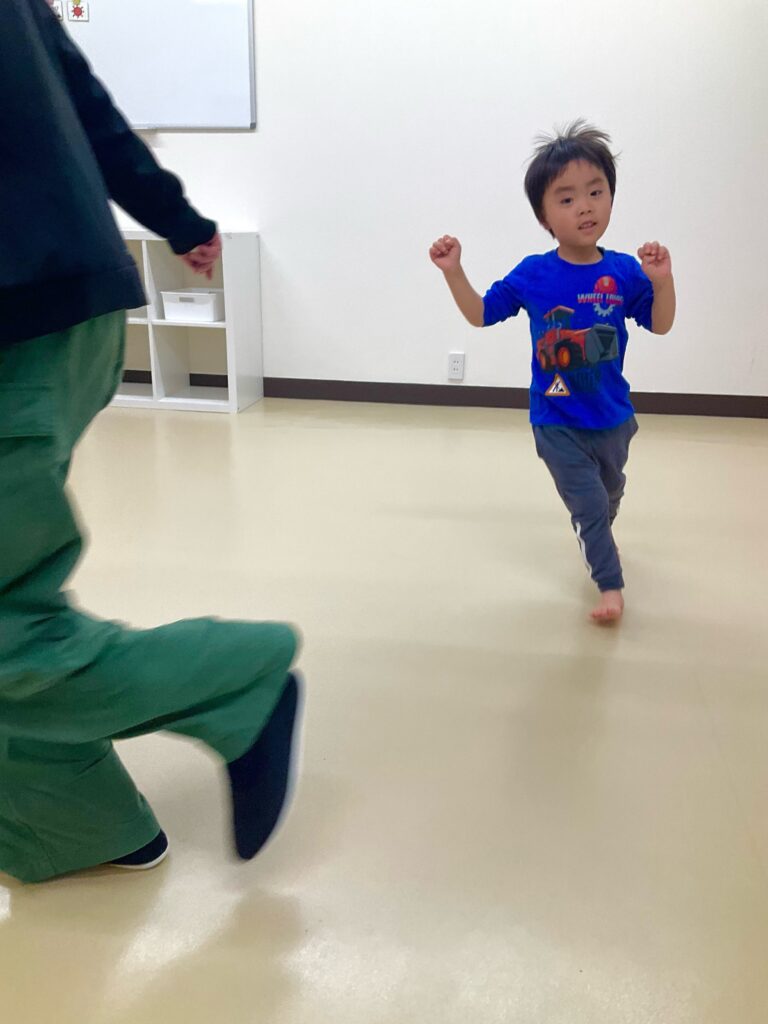 リズムウォークでは職員の真似をしたり、元気いっぱい走っていました!