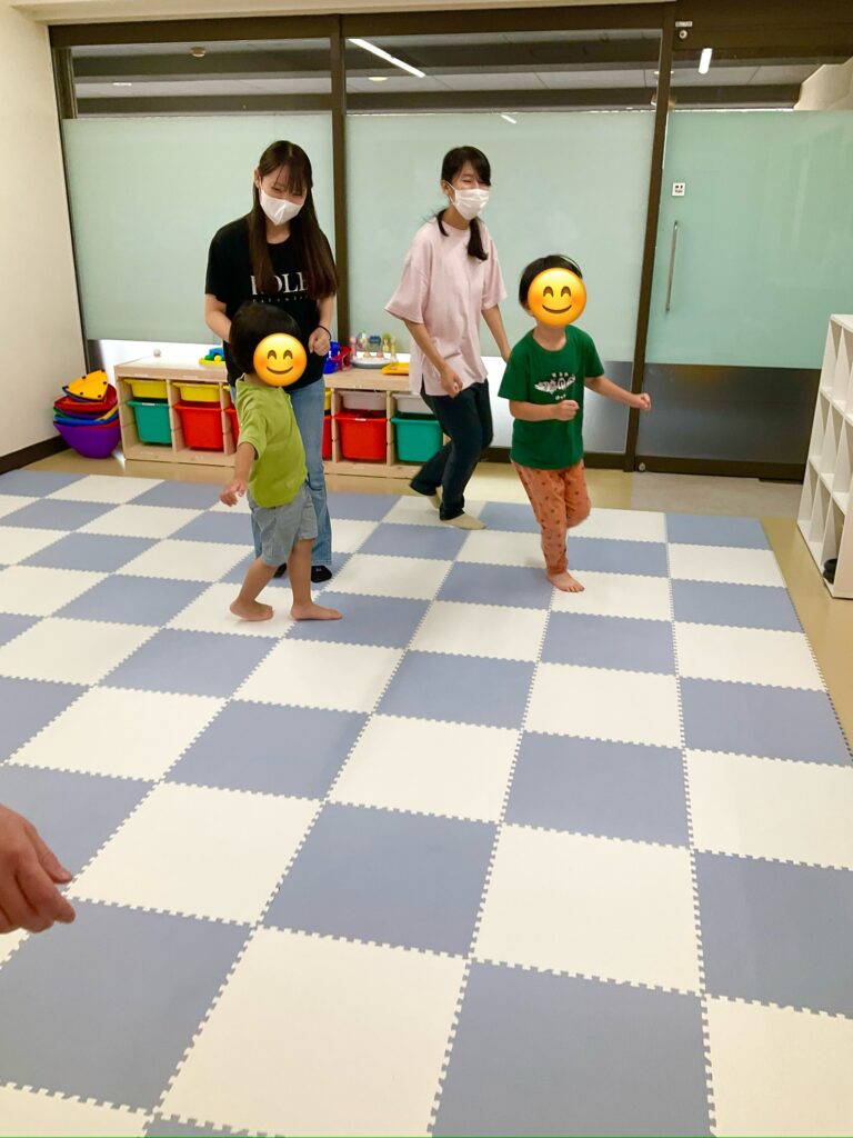 リズムウォークでたくさん身体を動かして走っています!!「よーいどん!」「止まって!」などよく聞いて動けていました✨