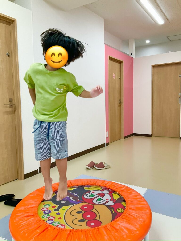こちらのセラピーでは、運動としてトランポリンでジャンプをしています!「ジャンプ楽しい~」