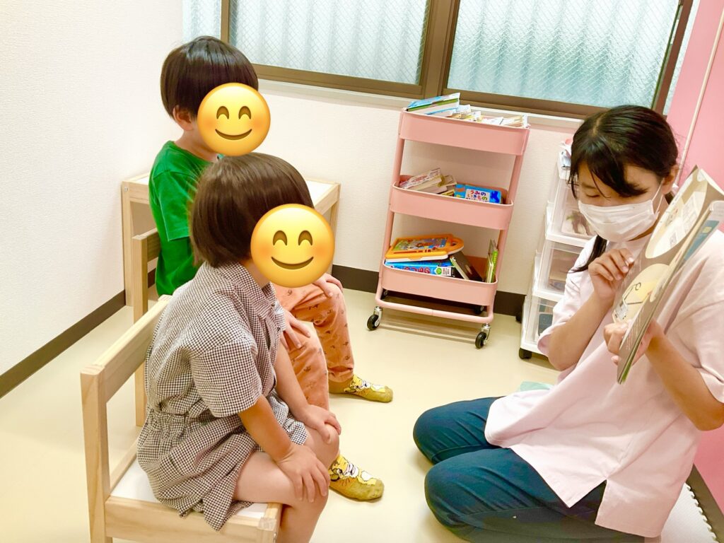セラピーが終わった後、お迎えや保護者の方とのお話が終わるまで絵本の読み聞かせをしています。「おそうじロボットすごい✨」