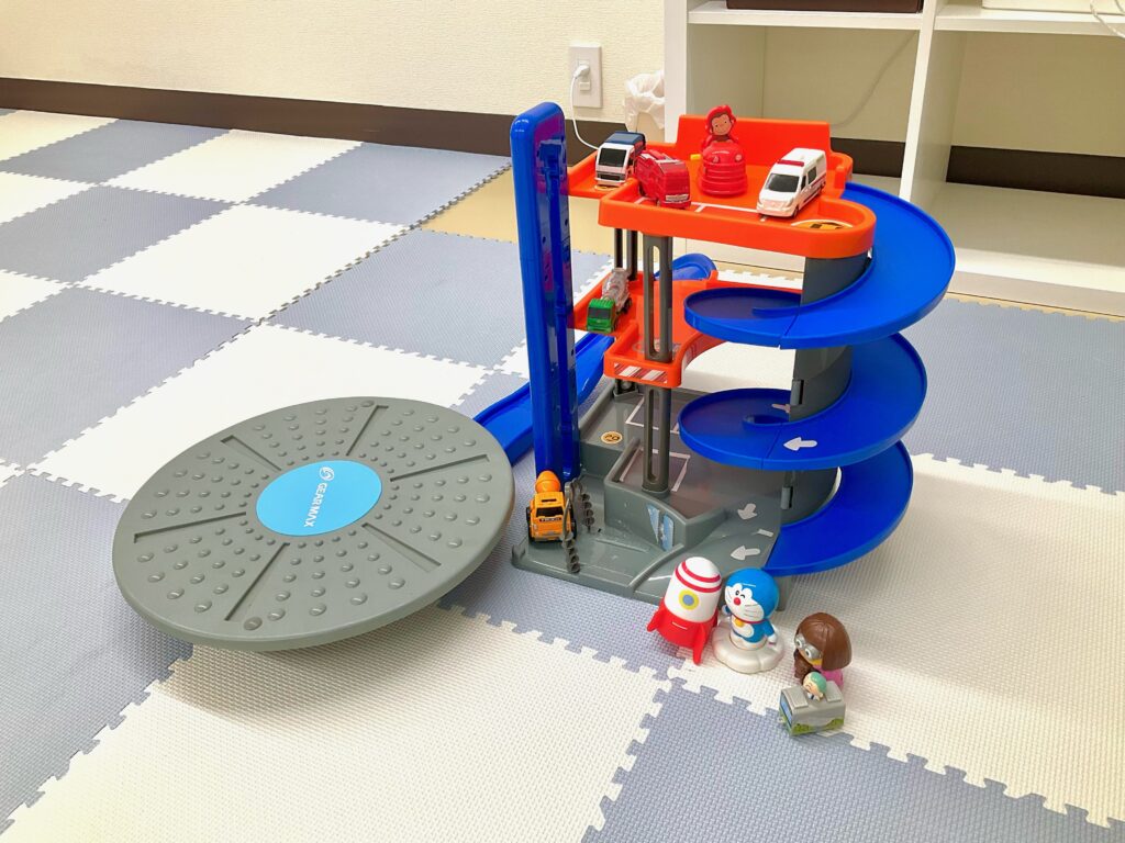 そして本日新しい乗り物の玩具と、運動に使うバランスボードが加わりました!