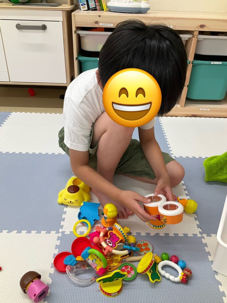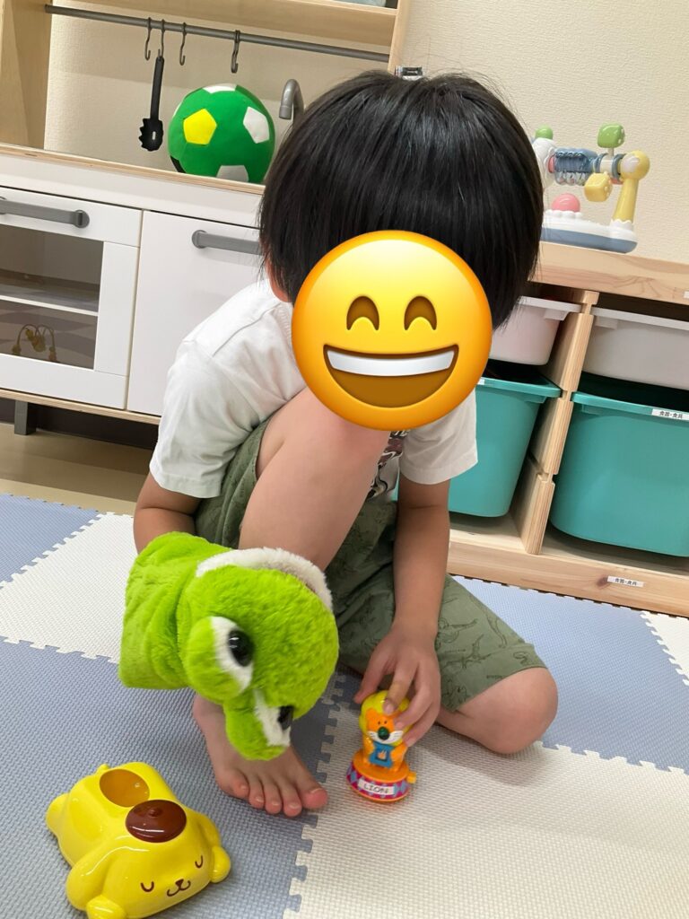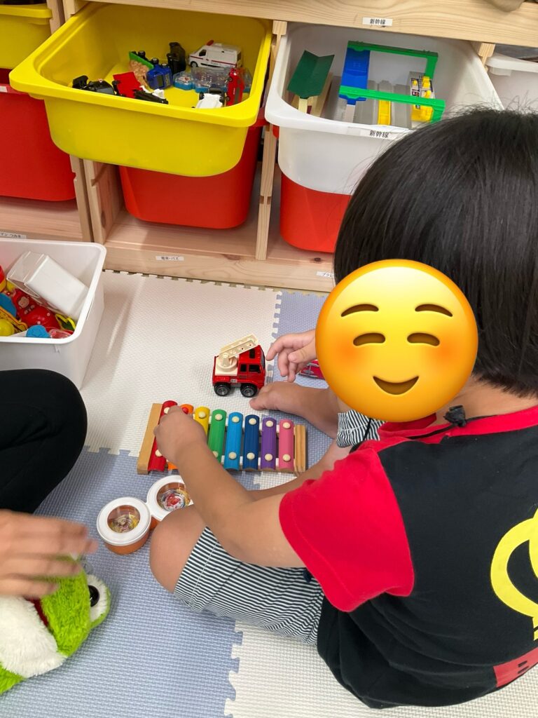 好きなおもちゃとおもちゃを組み合わせて上手に遊んでいます。
