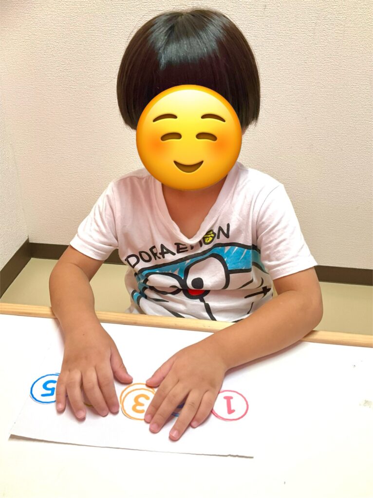 写真の課題は「マッチング」、同じ数字の仲間をみつけて正しい場所に仕分けしていきます。