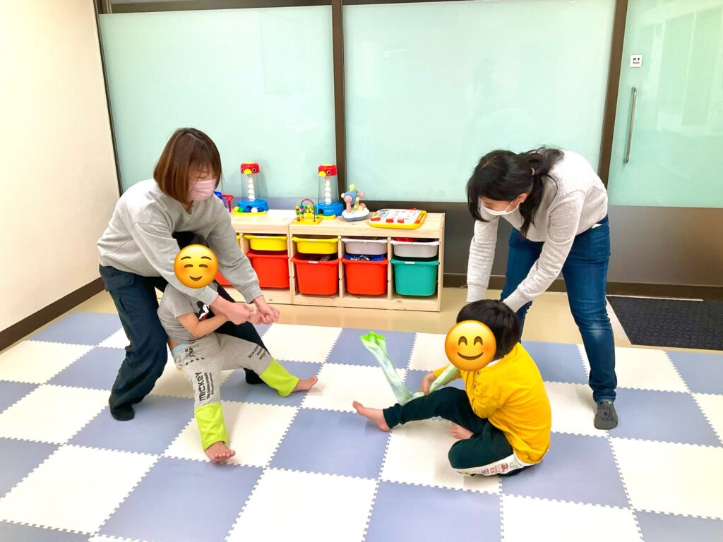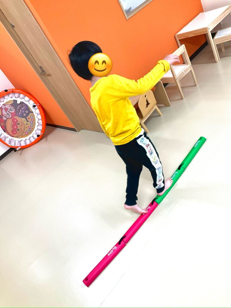 今日は初めての事に挑戦しています。二人とも足下に注意を向けたり感覚を味わいながら