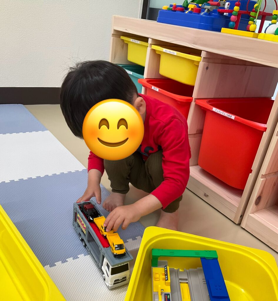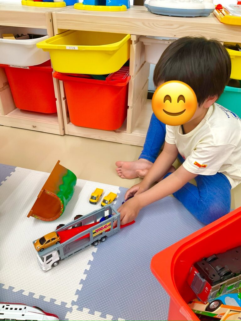 フリープレイではカーキャリアにトミカを乗せて、二人で平行に走らせて楽しんでいました。