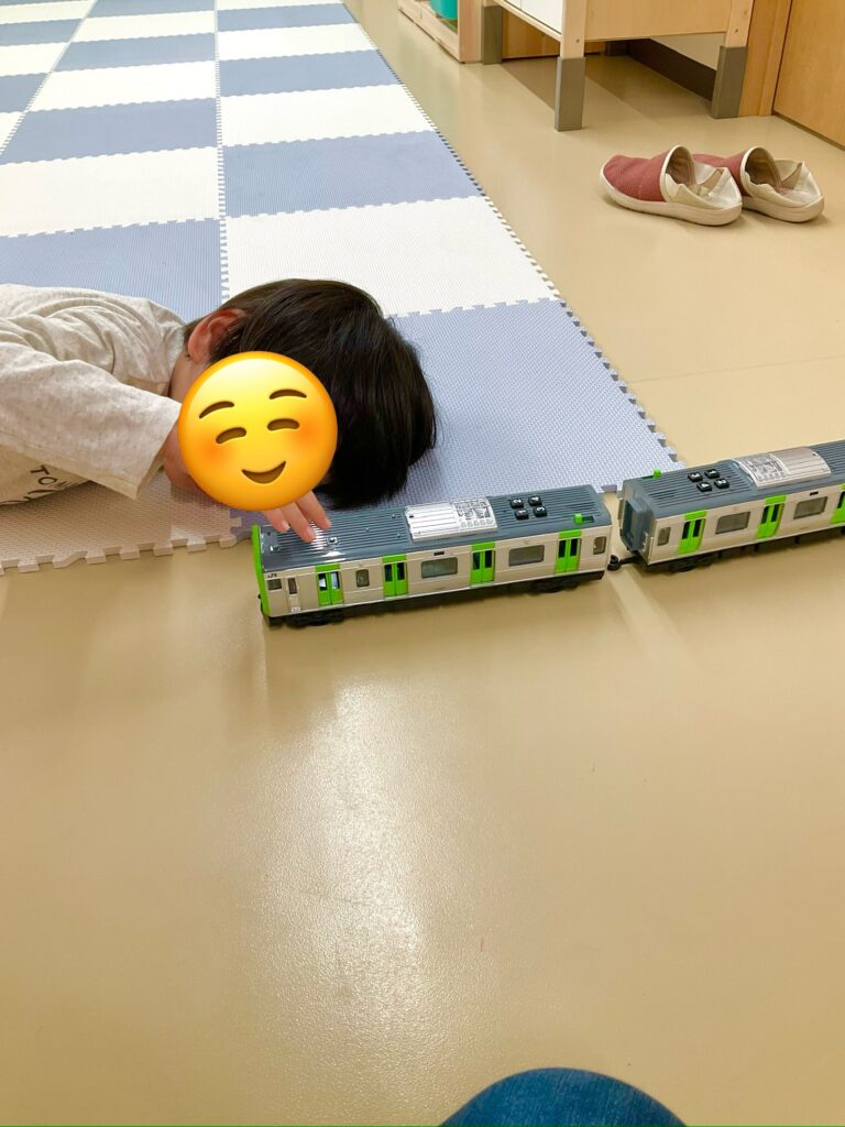 寝そべって電車を走らせています!「ご乗車ありがとうございました。」